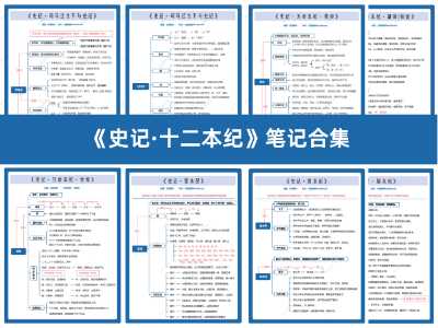《史记》十二本纪部分思维导图读书笔记,除本纪外还包括一份《司马迁生平与史记》思维导图。十二本纪以王朝为体系,主要记述了上古五帝、夏、殷、周、秦、汉等人物传记。